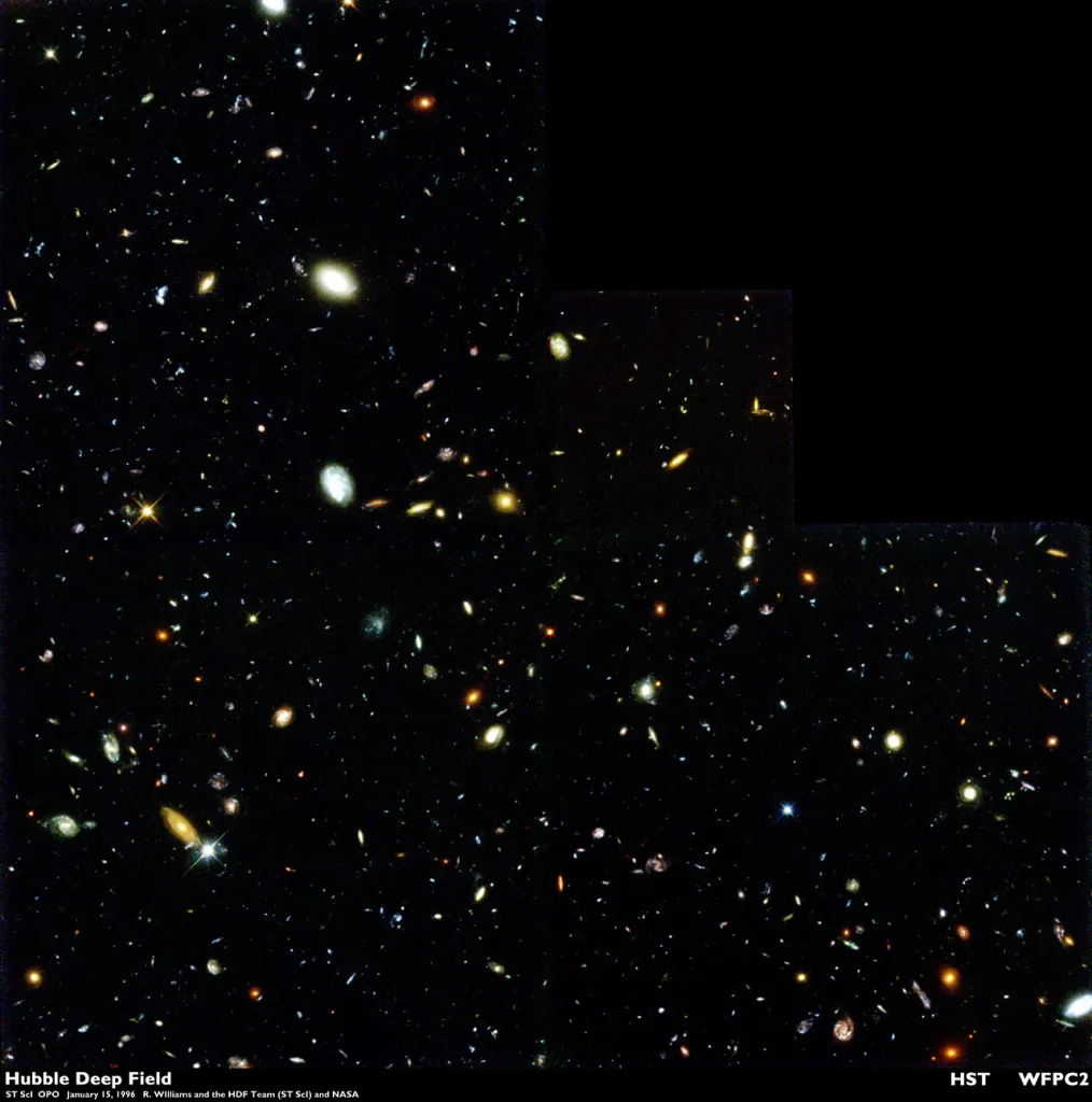 Later, American astronomer Dr. Robert Williams (October 14, 1940 – ) came up with the idea of ​​pointing Hubble at a dark spot and exposing it for 10 days. This is how the Hubble Deep Field was born in 1996, which is still being studied today.